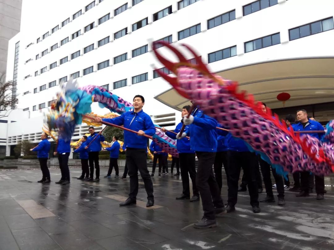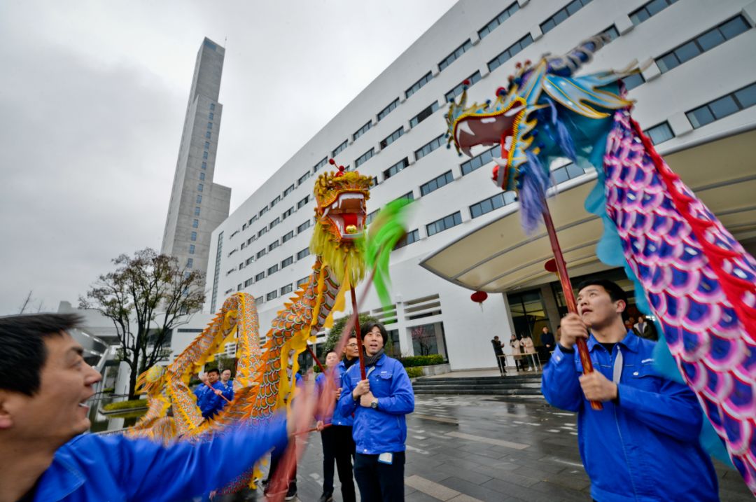 清晨,公司青年員工組成的舞龍隊(duì)冒著春寒守候在園區(qū)入口,以飽滿的熱情迎接全體員工重返工作崗位。隨著員工們接踵而至,兩條巨龍?jiān)诠穆曅熘猩舷路v、歡躍起舞,如同蛟龍穿行于歡樂的海洋。